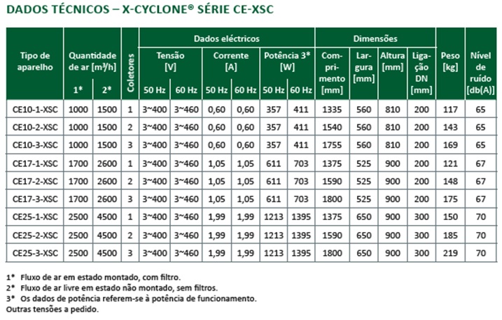 Dados Técnicos do Modelo CE-XSC